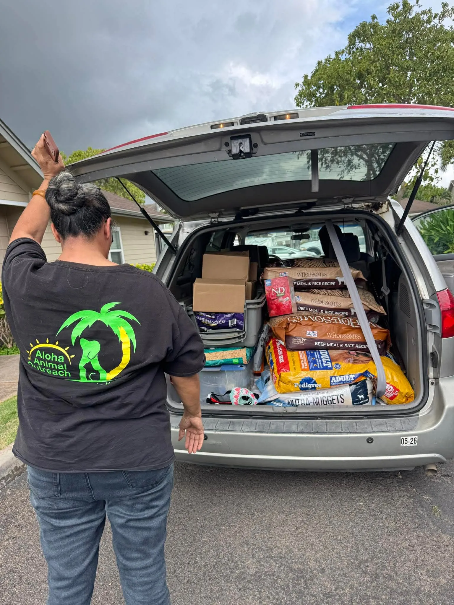 This past week, severe flooding devastated communities across Oʻahu. Families were displaced, camps were washed out, and animals were left without food, shelter, or their owners. Our team didn’t wait — we loaded up and headed out.
